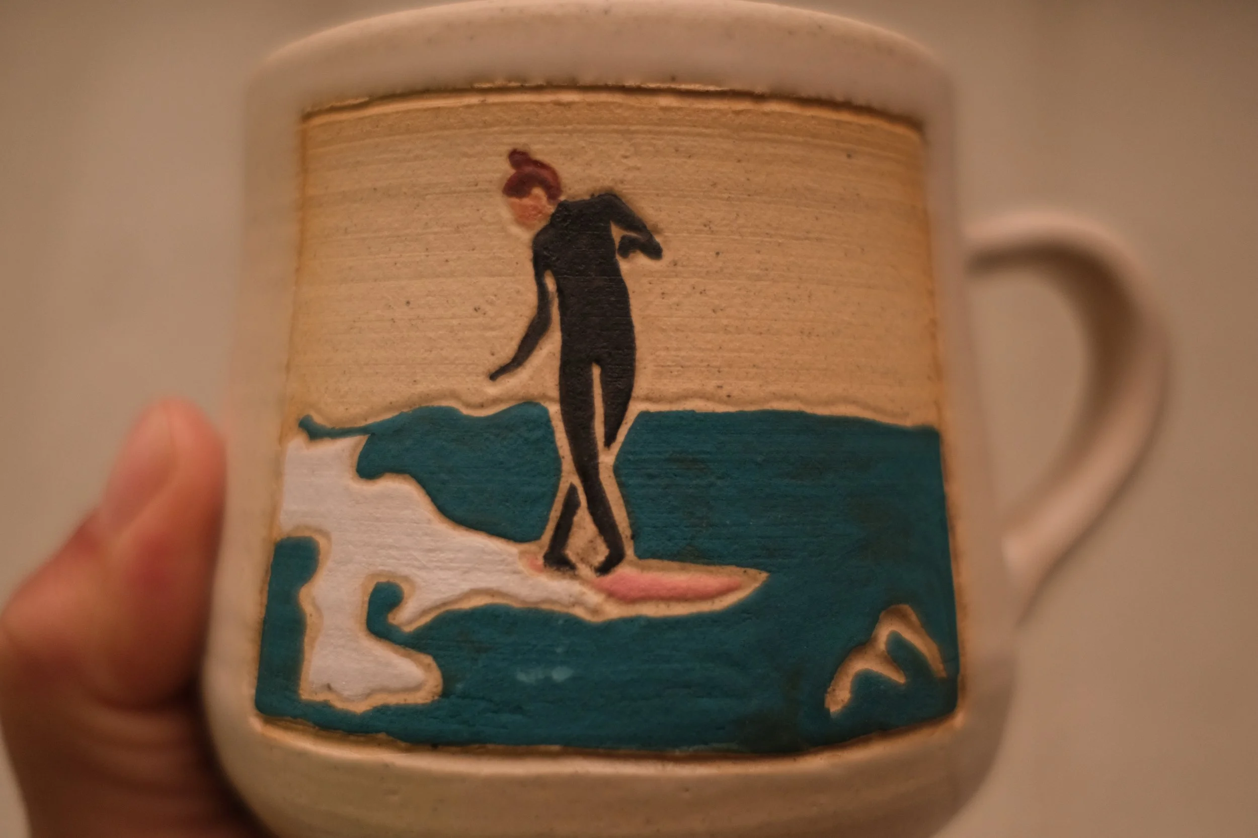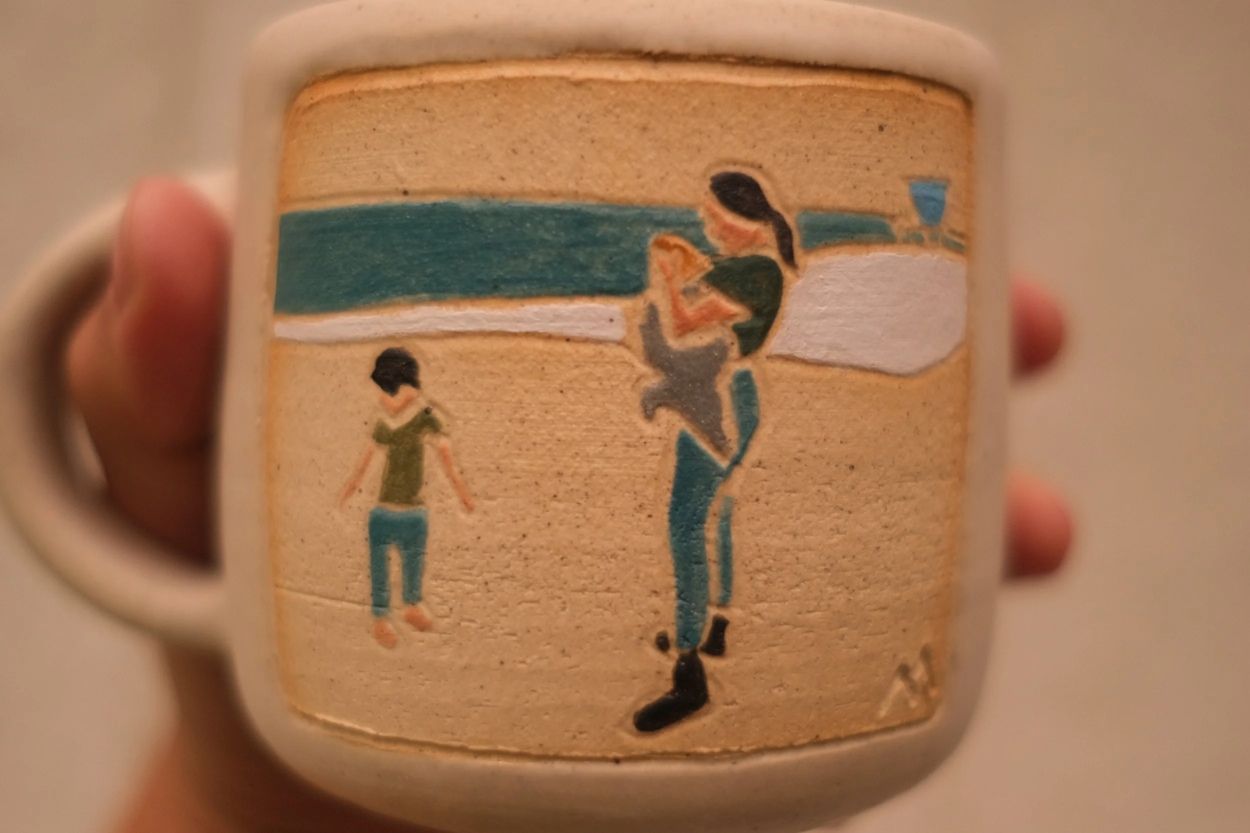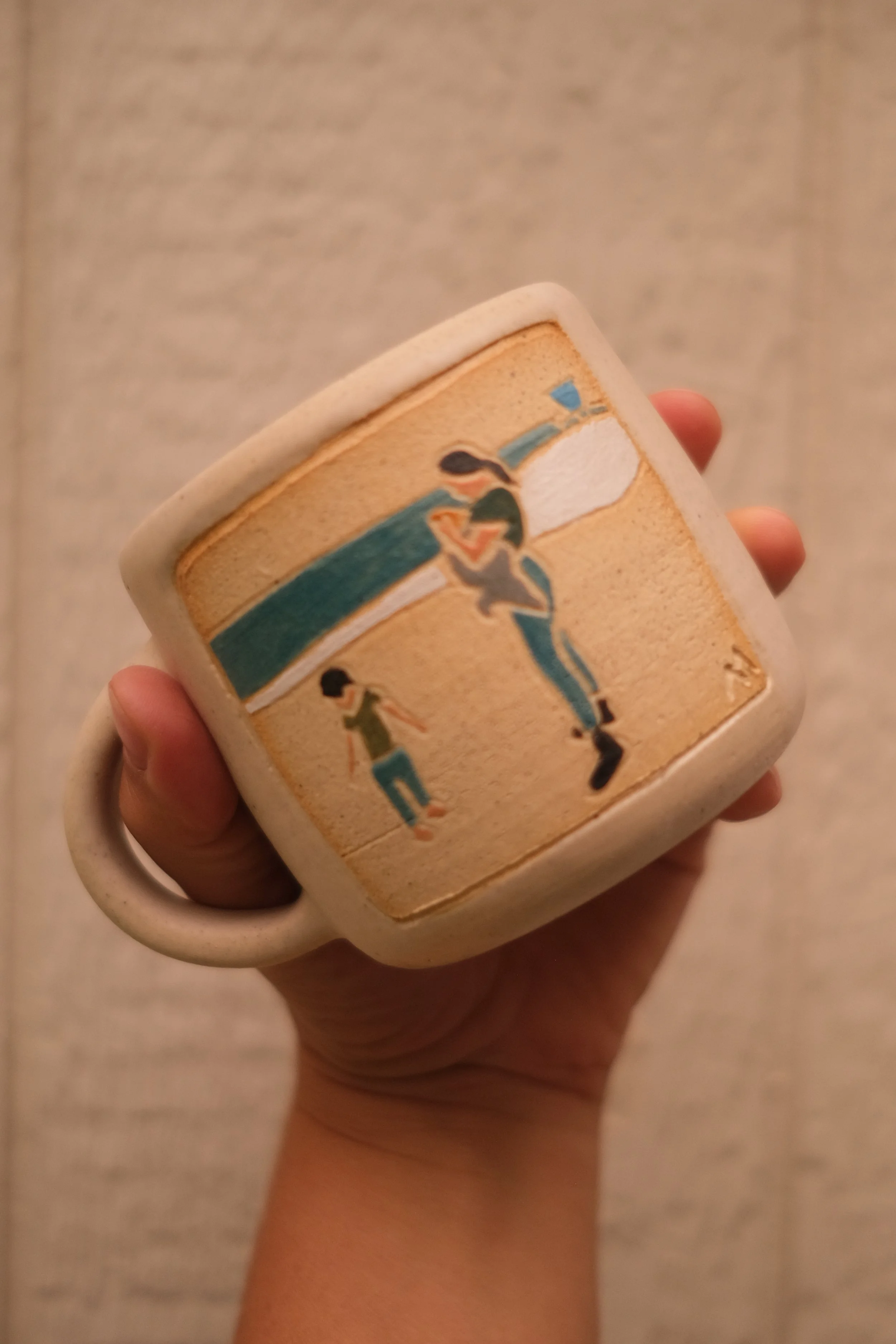 Hand thrown, carved & painted these beautifully crafted mugs are part of a line designed to highlight the beauty of motherhood.