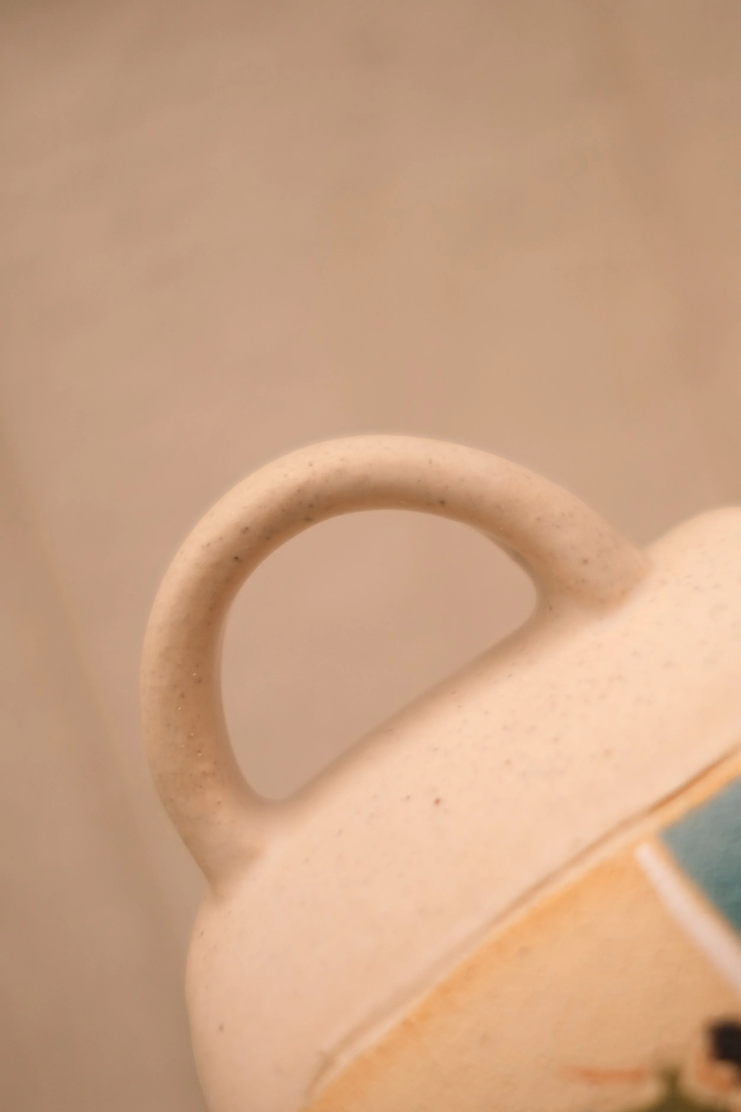 Note: this piece has some pulling away of the glaze around the handle, but nothing that will effect the use of the piece.